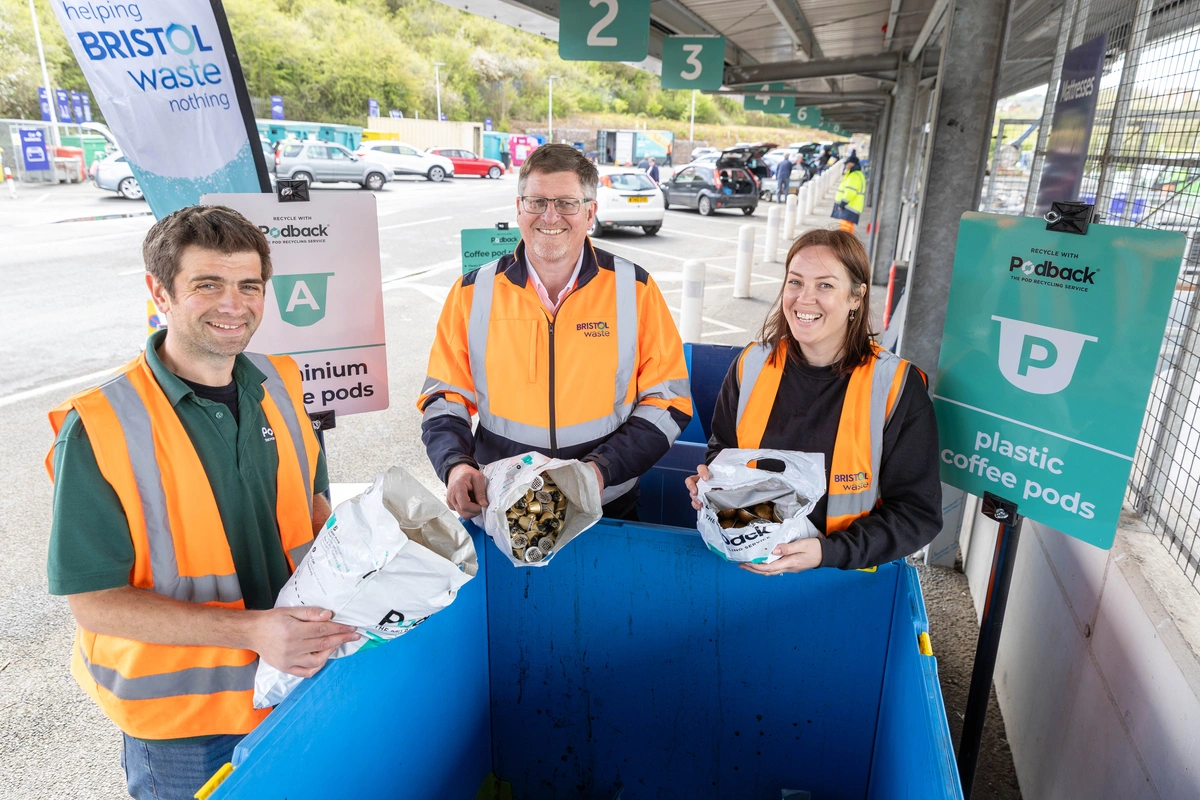 The latest partnership with Bristol Waste has seen drop-off points installed at three recycling centres (also known as Household Waste Recycling Centres, or HWRCs) located across the city; at St Philip’s, Hartcliffe Way and Avonmouth. The sites are now live, and a promotional campaign is underway, including free Podback caddies for the first residents to use the service at each of the three sites.