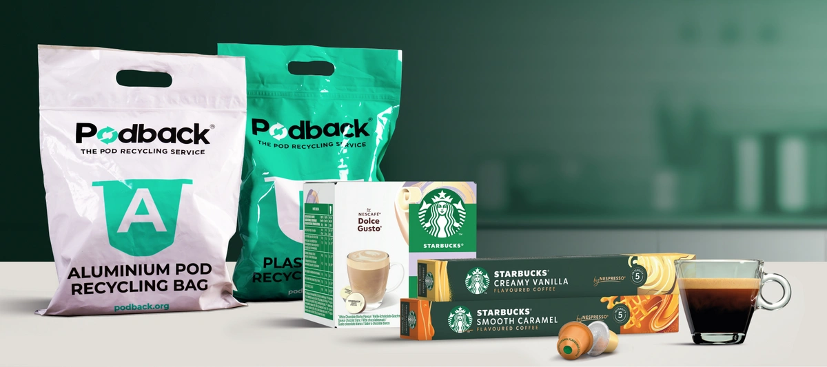 Starbucks Coffee Company has become the latest high-street coffeehouse chain to partner with Podback. In support of its ongoing commitment to sustainability, Starbucks UK is now offering customers a convenient option to pick up Podback’s free drop-off recycling bags across all of its 1,250 UK coffee shops.